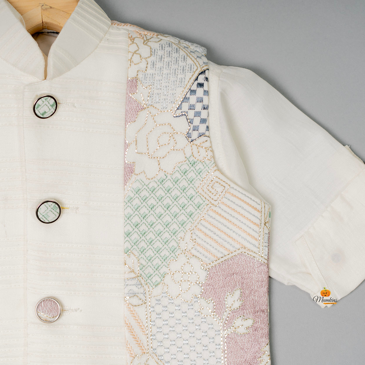 This cream boys kurta pajama is the perfect blend of traditional and modern design. Made with high-quality fabric, it offers comfort and durability.